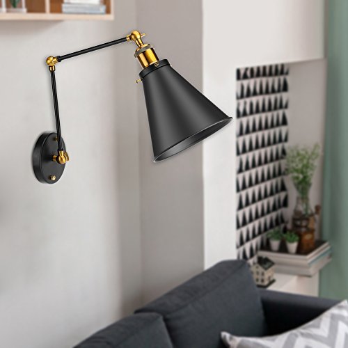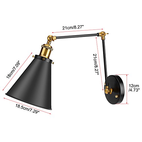 Garsent - Lampada da parete in stile vintage, regolabile, in metallo, per casa, ristorante, bar, decorazione da parete