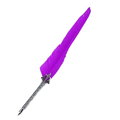 Garsent Retro Penna Piuma, Calligrafia Dip Pen,Metallo Penna Calligrafica Piuma con 5 Pezzi Pennino,Penna Regalo per San Valentino.(Porpora)
