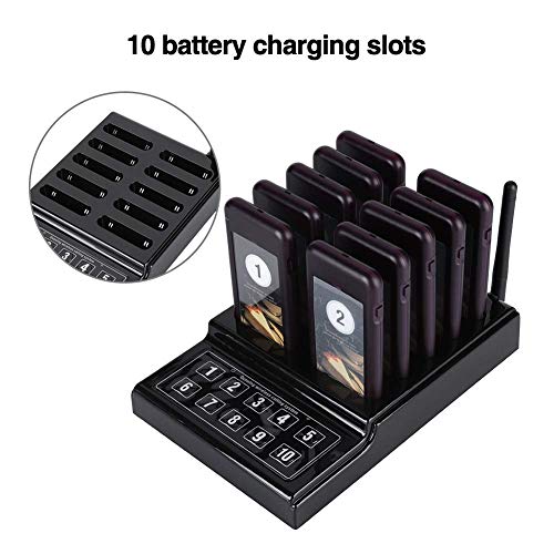 Garsent - Sistema di chiamata wireless per chiamate senza fili, sistema wireless per ristoranti e ristoranti, in coda con 1 tastiera, 10 cercapersone per ristorante, ospedale, caffè, negozio, ecc.