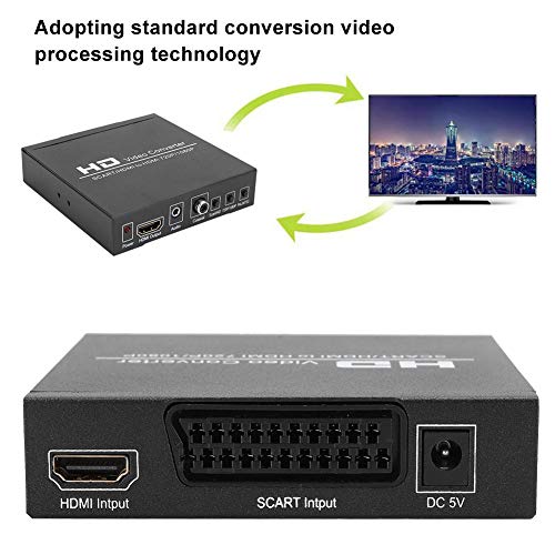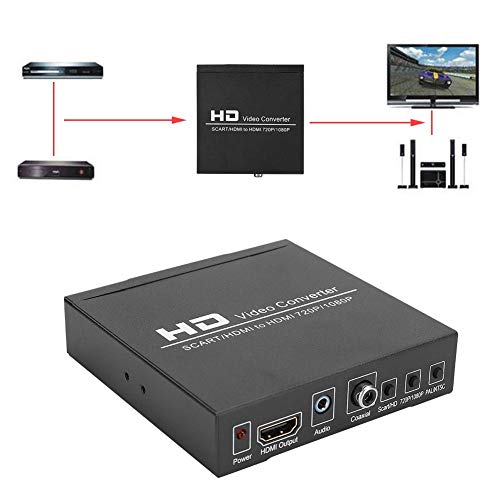 Garsentx Adattatore convertitore Scart/HD a HD, Adattatore Audio Video Professionale 720P/1080P, Scatola convertitore analogico Digitale Video Scart/Hdmi a Hdmi(EU)