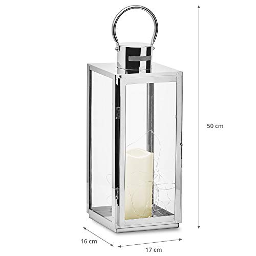 Lanterna in acciaio inox con candela LED, 17 x 16 x 41 cm
