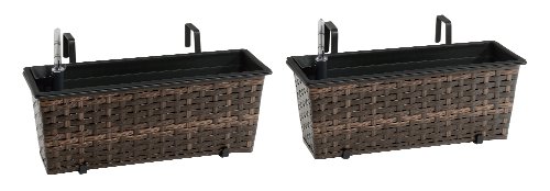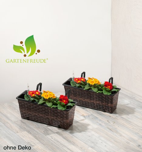 Gartenfreude Cassetta da Giardino in polyrattan, incl. agganci e Sistema per innaffio, Marrone Bicolore, 12 mm, 2 Pezzi, 60 x 19 x 18 cm