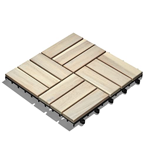 Gartenfreude Piastrelle in legno di acacia, 10 pezzi (0,9 m²), 30 x 30 cm, resistenti alle intemperie, facili da posare, colore: bianco