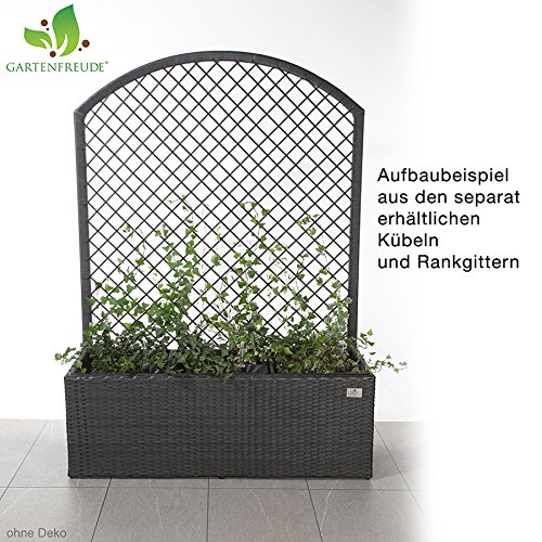 Gartenfreude Secchio per pianta da Giardino in polyrattan, incl. Elemento in plastica e Sistema per innaffio per Interno ed Esterno, Antracite, 102 x 36 x 36 cm