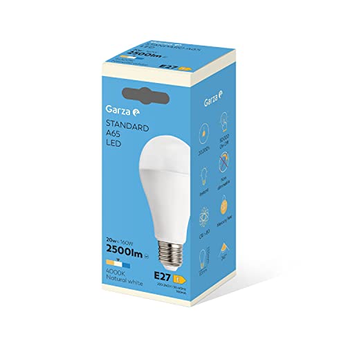 Garza - Lampadina LED standard A65, 20 W (equivalente a 160 W di incandescenza), luce neutra 4000 K, attacco grande E27, angolo 240°, 2500 lm
