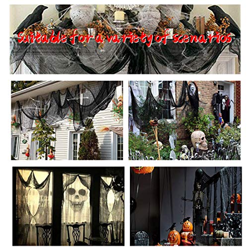 Garza Nera Panno di Halloween, Decorazione di Halloween, 2 PCS Panno Raccapricciante, Mussola di Cotone Spettrale Decorazione per Utilizzata su Mobili e Pareti o Porta, 150 x 600 cm