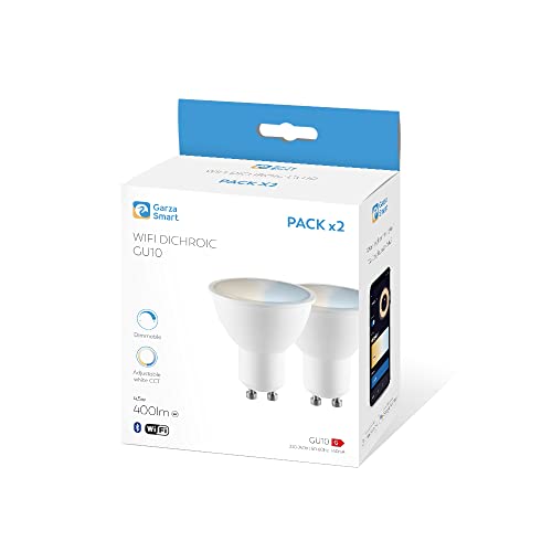 Garza ® Smarthome - Confezione da 2 lampadine LED GU10 Smart Wifi, luce bianca neutra dimmerabile con cambiamento di intensità e temperatura, programmabili, compatibili con Amazon Alexa e Google Home.