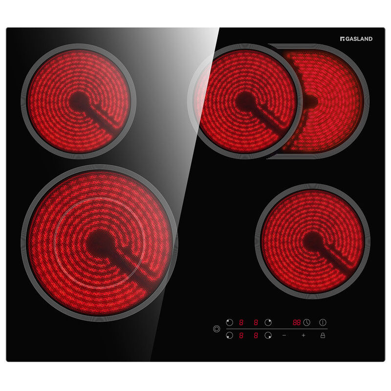 Produktinformation Gasland Chef CH604BF Gasland Sensor Berührung Keramikkochfeld 60 cm 4 Zonen Das Gasland Chef CH604BF Keramikkochfeld ist mit 4 Kochzonen ausgestattet, die für 220~240 V Wechselstrom und eine Nennleistung von 1200 bis 6600 W zum schnellen Garen vorgesehen sind. Leicht einzurichten Wählen Sie einfach Ihre Kochzone aus und stellen Sie die gewünschte Heizstufe über die Touch-Steuerung mit Digitalanzeige ein. Langer Timer Mit dem Timer können Sie die Garzeit für alle Kochzonen auf maximal 99 Minuten einstellen. Sicherheitsschloss Berühren Sie gleichzeitig die „+" und „-", um das Bedienelement der Tastensperre zu deaktivieren. Energieeffizient Das Elektrokochfeld heizt zentral auf und überträgt die Wärme direkt auf den Boden des Kochfeldes, um Energieverschwendung zu vermeiden. Restwärme-Warnung Wenn das Kochfeld einige Zeit in Betrieb war, entsteht eine gewisse Restwärme. Der Buchstabe „H" erscheint, um Sie zu warnen. Überhitzungsschutz Ein Temperatursensor überwacht die