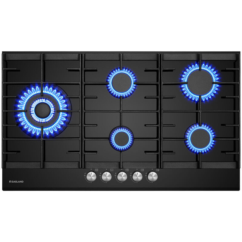 GASLAND Chef 87 cm Glas-Gaskochfeld 5 Flammig Der Gaskocher GASLAND GH2905BG1FC ist mit 5 Brennern ausgestattet, geeignet für AC 220~240 V und einer Gesamtleistung von 10,4 kW, mit französischem Stecker. Maximierung des Garraums Durchgehende gusseiserne Grillroste bieten mehr Platz für größere Töpfe und Pfannen und können mit einer Grillpfanne verwendet werden, um eine Vielzahl von Kochanforderungen zu erfüllen. Brenner mit hoher Leistung Der 3,4 KW-Dreifachbrenner bietet eine hohe Heizleistung für schnell kochendes Wasser, was Ihnen Zeit sparen kann! INTEGRIERTE INITIALZÜNDUNG Die integrierter Zündung ermöglicht schnelles und müheloses leistungsstarkes Erhitzen. Kein Bedarf mehr für Streichhölzer und Feuerzeug. HOCHWERTIGE MATERIALIEN Die dicken gusseisernen Roste sind aus robusten, hochwertigen Materialien gefertigt und können eine Vielzahl von schweren Töpfen und Pfannen tragen. EIN KOSTENLOSER WOK-RING Ein Wokring dient nicht nur als Ersatz für Reparaturen, sondern kann auch das