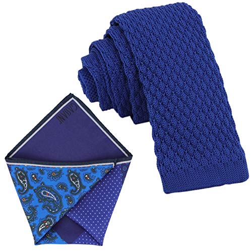 GASSANI Set Cravatta Uomo Sottile e Stretta Blu, Larghezza 6 cm, Trama Effetto Lana Lavorata a Maglia, Pochette con 4 Diversi Design Colorati