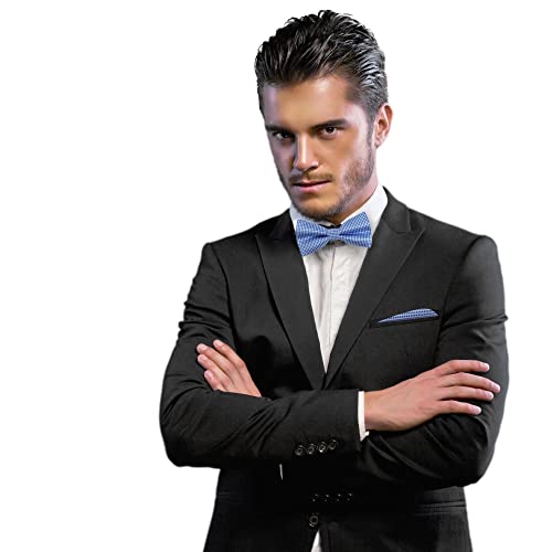 GASSANI Set Papillon 3 Pezzi, Papillon Da Uomo Matrimonio A Quadretti Elegante Classico, Farfallino Fantasia A Quadri Pre-Annodato Con Laccetto Regolabile, Gemelli E Pochette Taschino Da Piegare