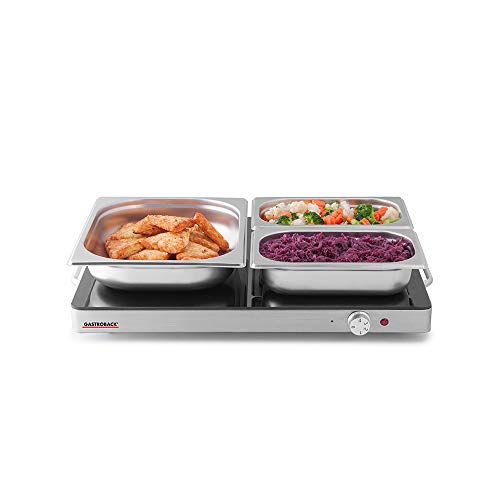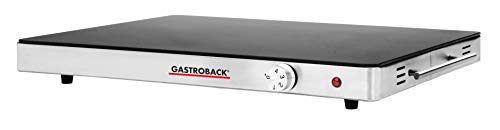 GASTROBACK 42491 Design Warmhalteplatte, Warming Tray, Speisenwärmer, Tellerwärmer, 400 Watt, Extra Große Heizfläche Piastra riscaldante, Vetro Termico Satinato, Nero-Argento