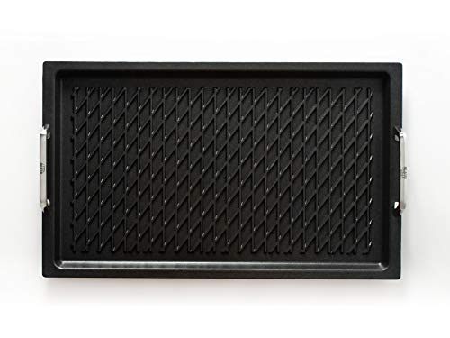 Gastronorm - Piastra GN 1/1 con fondo per barbecue per induzione by AMT Gastroguss, 53 x 33 cm, altezza 2 cm, con manici in acciaio inox, rivestimento antiaderente Lotan® AMZN-KG-I-2533-G-BBQ