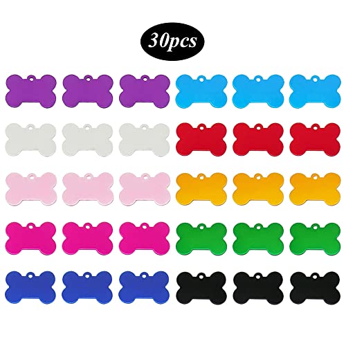 Gativs Targhetta Cane 30 Pezzi Targhetta per Cani Medaglietta Medagliette da Incidere Targhetta in Alluminio con Forma di Osso Vuota Targhette per Cani e Animali Domestici Multicolore