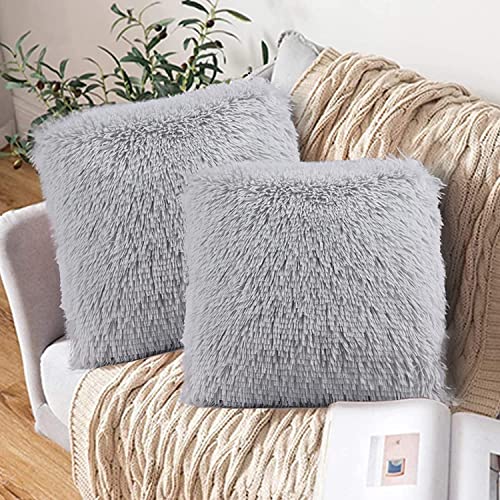 GATOP 40X40 CM 2 Pack Copricuscini Divano Camera da Letto Cuscini Arredo Fodere Arredamento Casa Federe Moderni Elegante Morbido Resistente in Pelliccia artificiale con la Cerniera Invisibile