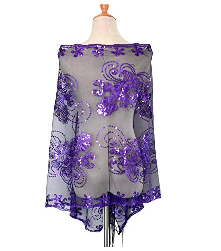 L'VOW Gatsby 1920s - Foulard da donna con lustrini, motivo: Stola, viola., Taglia unica