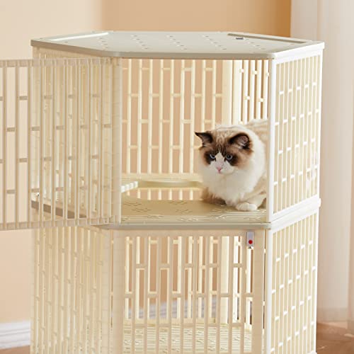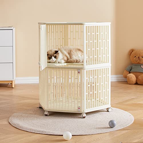La splendida casetta per gatti con design esagonale è molto robusta, ci sono fori di ventilazione e ruote nella parte inferiore, che è comoda e traspirante per consentire ai gatti di giocare.