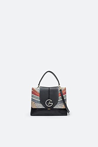Gattinoni Borsa a Mano Grande con Flap Sveva in Pelle Nera e patta Planetarium Classic - da Donna - in Tela spalmata e stampata - Stampa Planetarium - Multi colore, Taglia Unica
