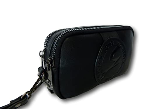 Gattinoni Pochette uomo da polso Nera Borsa Borsello a mano Nero doppia zip cinturino Beauty