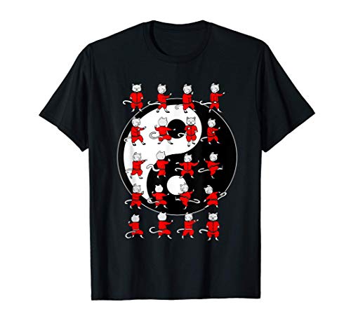 Il gatto divertente di Tai Chi muove il disegno di Yin Yang Maglietta