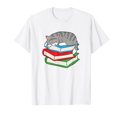 Gatto che dorme sui libri Gatto bibliotecario Maglietta