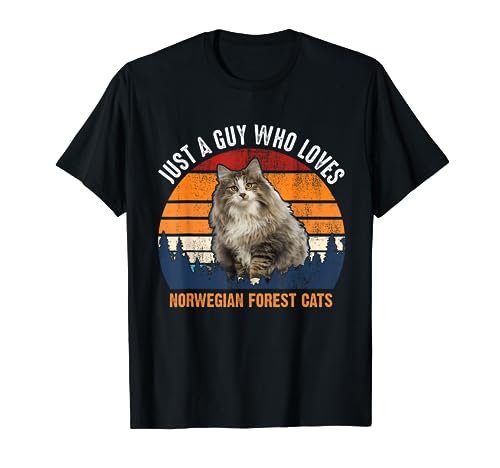 Una bella camicia da gatto che recita "JUST A GUY WHO LOVES NORWEGIAN FOREST CAT ". È una maglietta da gatto della foresta per gli uomini. Questa camicia con i gatti della foresta norvegese è un grande regalo per i gatti della foresta norvegese.