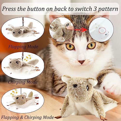 Simulazione Scoiattolo Realistico - Lo stampaggio di simulazione con il suono vivido del mouse e l'azione flapping rendono il mouse volante molto più realistico che può attirare l'attenzione dei gatti, aggiunge realismo al gioco di caccia dei gatti. Mantieni il tuo gatto dalla noia e promuovi l'esercizio fisico