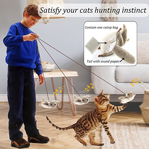 Gatto Giocattoli Ricaricabile Mouse Battente con Catnip,Giocattoli Interattivi del Gatto Appesi Della Porta Con il Suono Realistico Dello Scoiattolo Volante, Giocattoli per Gatti Attivati al Tocco