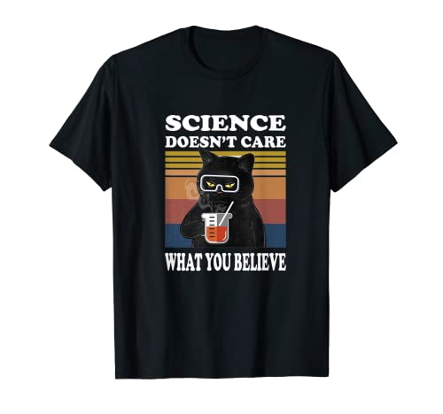 Gatto Nero Scienziato Science Doesn't Care What You Believe Maglietta