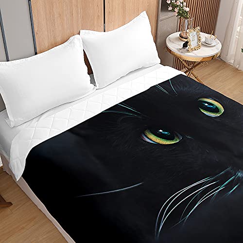 3D Gatto Stampa Trapuntino Copriletto Trapuntato Matrimoniale Singolo, Chickwin Coperta Primaverile Estivo Trapunta Goffrato Coperta Leggera per Camera da Letto (Gatto nero,200x230cm)