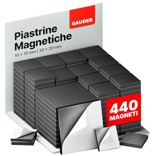 GAUDER Piastrine Magnetiche (10x10mm) | 440x Calamite Adesive | Magnetiche Adesive quadrati per foto & altro | Strisce Magnetiche Adesive
