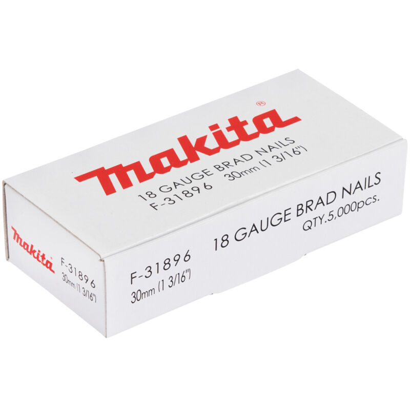 Makita F-31896. Tipo di prodotto: Chiodo senza testa, Materiali: Zinco acciaio, Adatto per materiali: Legno. Lunghezza: 30 mm. Quantità per pacco: 5000 pz