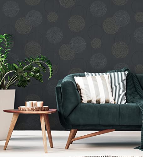 GAULAN 451898 - Carta da parati in vinile di circoli e fiori geometrici grigio scuro in rilievo per muro soggiorno cucina bagno camera testiera corridoio - Rotolo di 10 m x 0,53 m