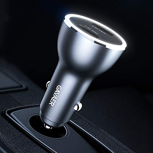 GAVAER Caricabatterie Auto con Dual 2,4A Porta USB, 24W Caricatore Auto Compatibile con dispositivi Apple, Android e Altri Dispositivi Elettronici [Grigio].