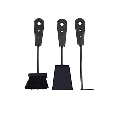 Gavemo AMBLY, Set Attrezzi 3 Pezzi da Camino con Sacca in Cuoio, Accessori da Camino, Limac Design®., Nero