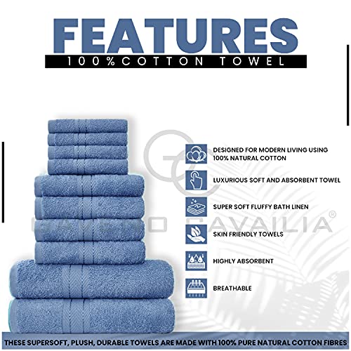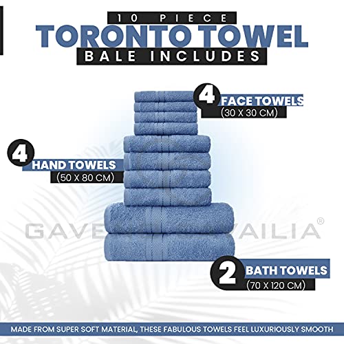 GC GAVENO CAVAILIA Asciugamani morbidi - Set da 10 asciugamani da bagno - Asciugamano assorbente dell'acqua di alta qualità, 4 asciugamani da bagno a 4 mani, 2 asciugamani lavabili da 450 g/m², blu