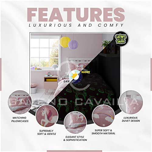 GC GAVENO CAVAILIA Set copripiumino matrimoniale, in pile, con unicorno che si illumina al buio, rosa cipria