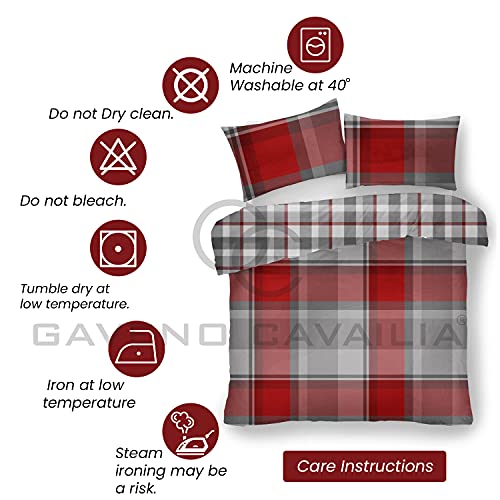 GC GAVENO CAVAILIA Set copripiumino a scacchi, morbido e caldo set di biancheria da letto matrimoniale in policotone stampato, rosso