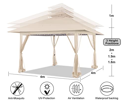 Gazebo da Giardino 4x4m Pieghevole Impermeabile con Zanzariera Pannelli, Gazebo Esterno Resistente con Uscita di Drenaggio, Struttura in Metallo, Tende Gazebo Per Spiaggia, Festa, Matrimoni, Mostre