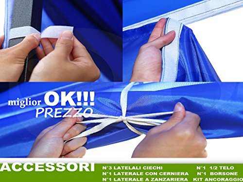 ACCESSORI INCLUSI - n°3 laterali ciechi - n° 1 laterale con cerniera - n° 1 laterale zanzariera - n°1 telo copri-bancone n° 1 borsa trasporto