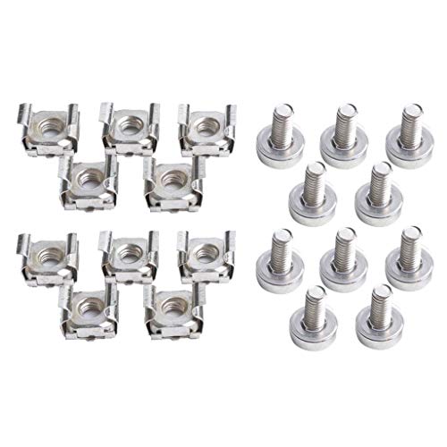 Gazechimp Dadi e Viti con Rondelle in Metallo Nichelato per Gabbia, Montare Tutti I Rack per Fori Quadrati Rack Server o Cabinet - 10 Sets, M6x16