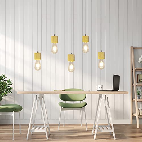 GBLY lampada a sospensione lampada da tavolo a 5 fiamme in legno da 150cm lampada a sospensione regolabile in altezza con attacco E27 per sala da pranzo cucina soggiorno ristorante (senza lampadine)