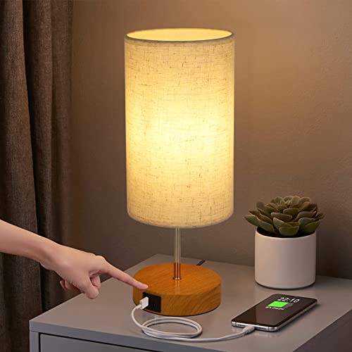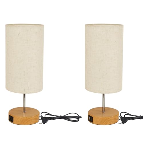 GBLY Set di 2 lampade da tavolo soggiorno Touch Dimmable Bedside Lamp - USB moderno con funzione di ricarica Lampada da tavolo E27 Presa di corrente Tessuto Luce notturna Luce bianca calda