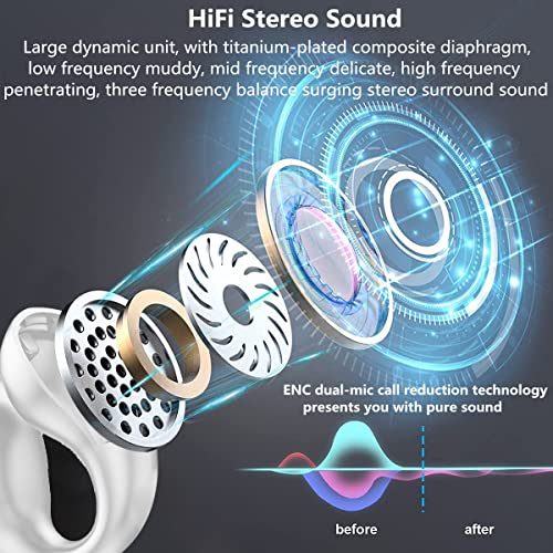 GBOKYN Cuffie Wireless Cuffiette Bluetooth V5.3 Conduzione Ossea Clip auricolari Non Nell'orecchio con HD Mic Stereo Cancellazione Rumore Touch Control Impermeabile Sportivi Cuffiette