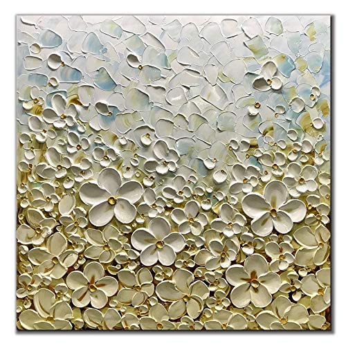 Gbwzz Dipinto a Mano Astratto Bianco Fiore Paesaggio Dipinto ad Olio, 100x160 cm 40x64 Pollici