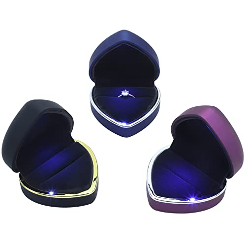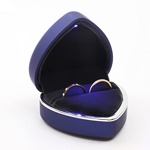 GBYAN Scatola porta anelli con luce LED a forma di cuore blu portagioie per proposta, fidanzamento, matrimonio (blu)