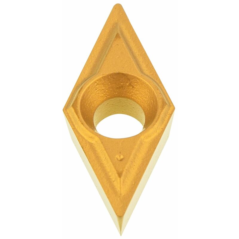 Dati tecnici Codice ISO Inserto GCCT 060202 Raggio di curvatura 0,2 mm Tipo HB7035 Materiale da taglio HM Rivestimento TiN Impiego principale P Uso secondario K Condizione di taglio continuo Rompitrucioli SF Profondità di taglio ap 0,05 mm - 0,35 mm Avanzamento f 0,03 mm/U - 0,25 mm/U Velocità di taglio vc applicazione principale 60 m/min - 150 m/min Velocità di taglio vc applicazione secondaria 60 m/min - 150 m/min Numero di sostituzioni/taglienti 2 Assegnazione finitura/sgrossatura Finitura Tipo di prodotto Inserto per tornitura Codice articolo 268590 HB7035 EAN / GTIN 4062406057619