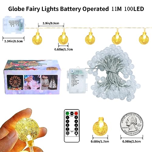 GCMacau Catena Luminosa Interno, Luci Della Stringa Del Globo Alimentate a LED Batteria,Impermeabili 11M 100 LED con Telecomando 8 Modalità per Matrimoni Balcone Natalizie Decorazioni