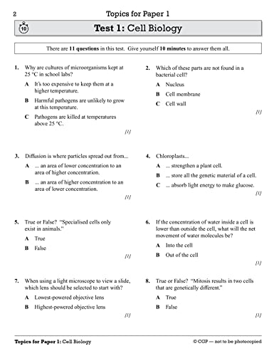 GCSE Biology: AQA 10-Minute Tests (includes answers)