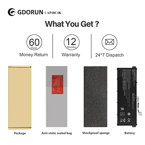 GDORUN 48Wh AP18C4K Laptop Batteria per ACER Aspire 5 A514-52 A514-52G A514-52K A515-43 A515-43G A515-44 A515-44G Spin 3 SP314-54N SP314-54N-54XS A515-43-R057 A515-44G-R26L A514-52G-521W 3ICP5/81/68